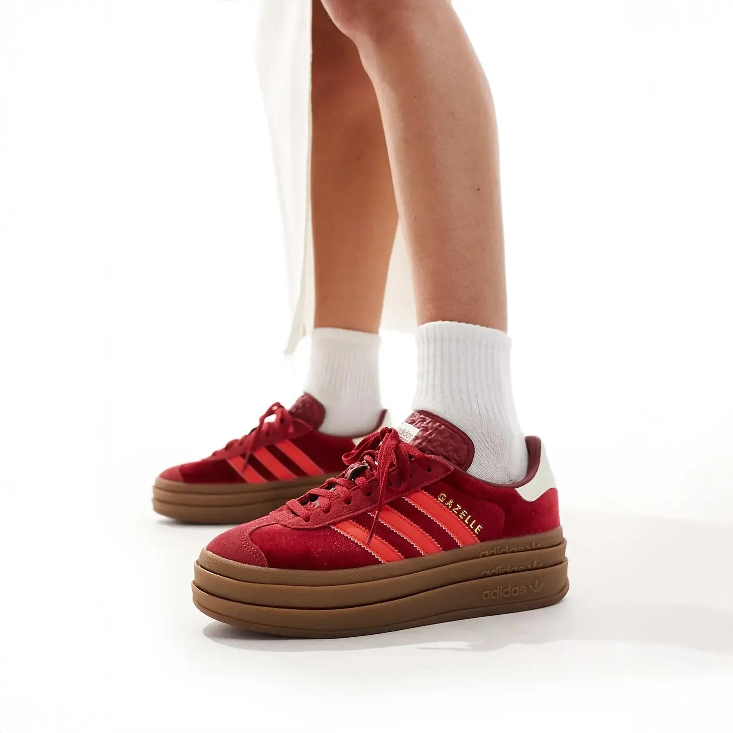 Heritage style meets everyday elegance in these adidas Gazelle Bold shoes. Taking design cues from the beloved '70s trainers, this pair redefines the silhouette with a layered platform outsole and ultra-rich colors. A luxe velvet upper adds a touch of decadence, while suede details reference the rich materials of the original style. Once an athletic favorite, now an iconic staple, these shoes are ready for wherever the day takes you.
