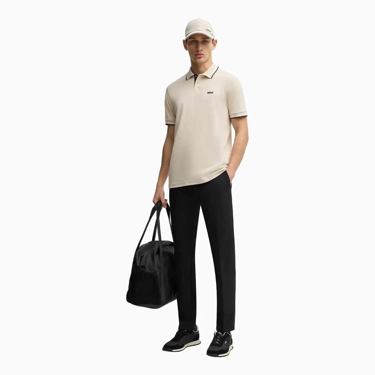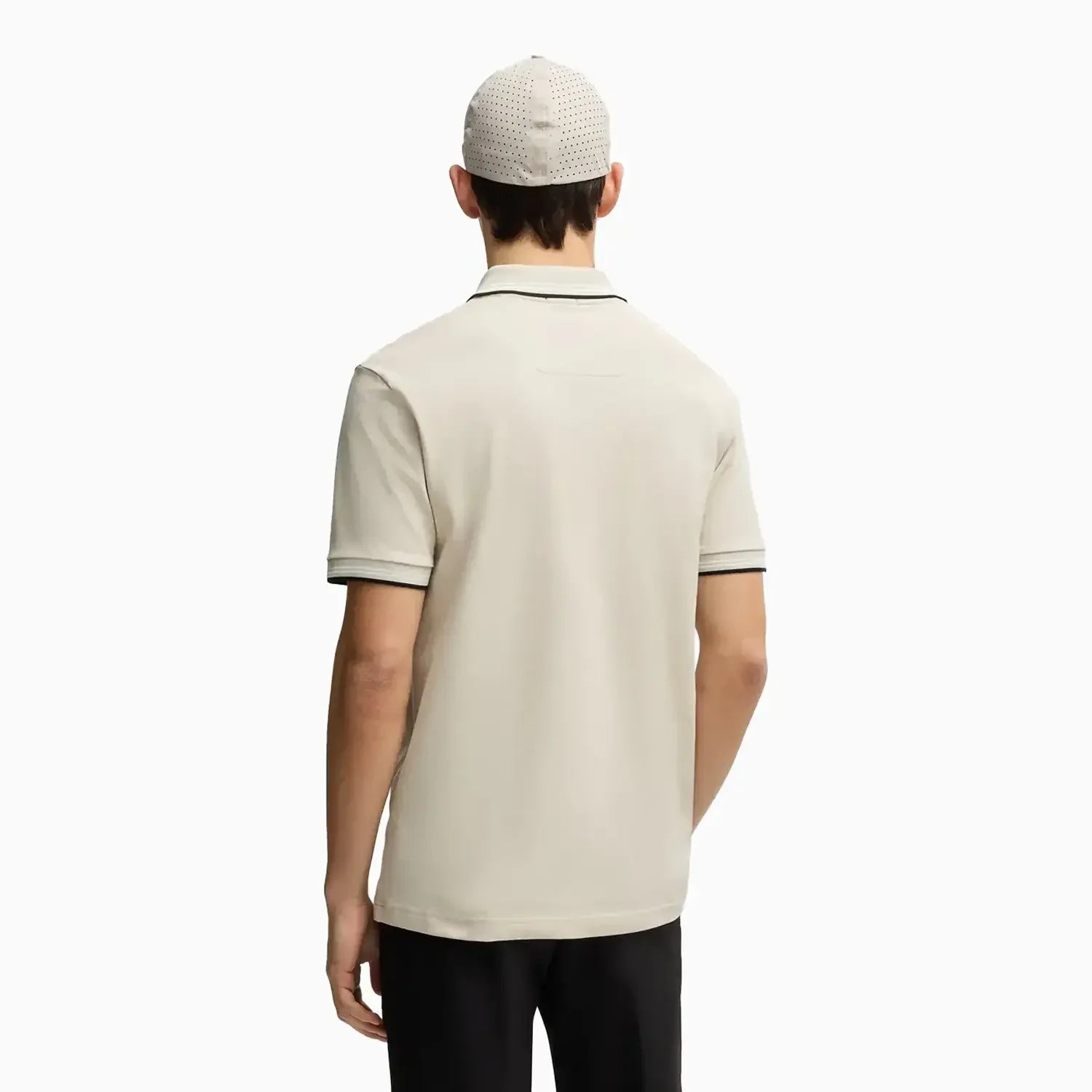 A contemporary polo shirt cut to a defined fit by BOSS Menswear, created in stretch cotton with contrast stripes and branding.