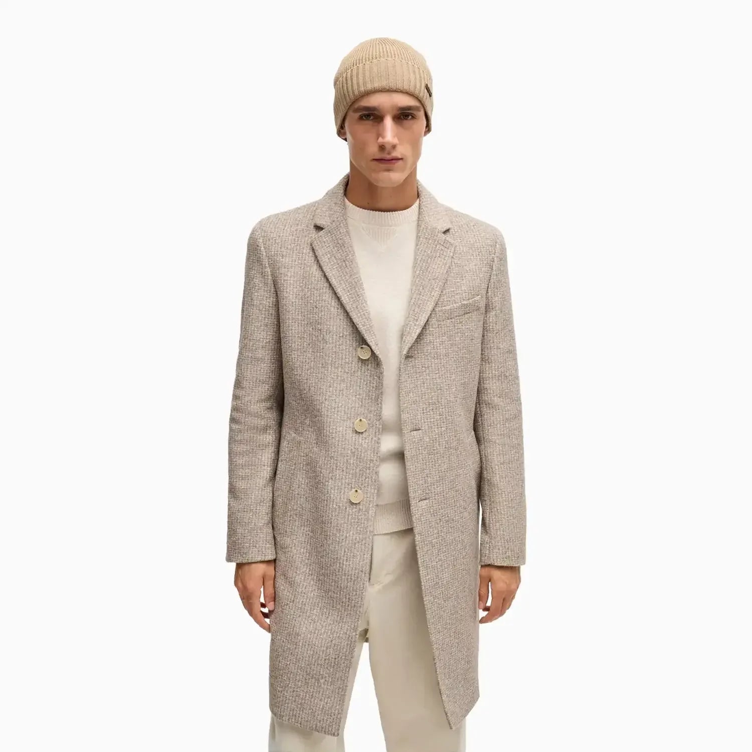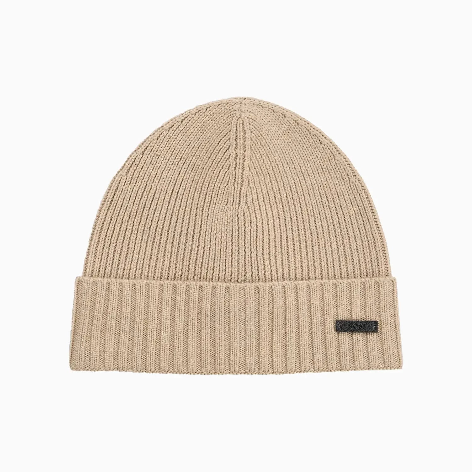 A cozy beanie hat with a logo label in synthetic coated fabric by BOSS. This accessory is knitted with a ribbed structure in soft yarn. Synthetic coated fabric, sometimes referred to as faux leather, is a fabric designed to resemble real leather, and/or display a matte, glossy, smooth, or textured, coated appearance. This product is made with wool.
