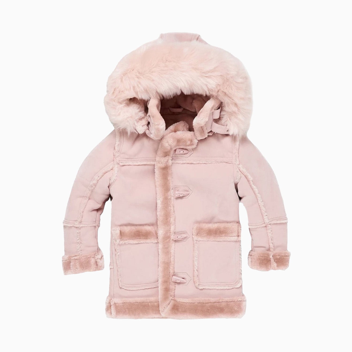 Your kid will stay warm and cozy in this Kid's Denali Shearling Jacket. With a full sherpa lining and an attached faux fur hood, this jacket offers a snug fit and improved thermal insulation. The adjustable belt keeps your child comfortable no matter the activity.