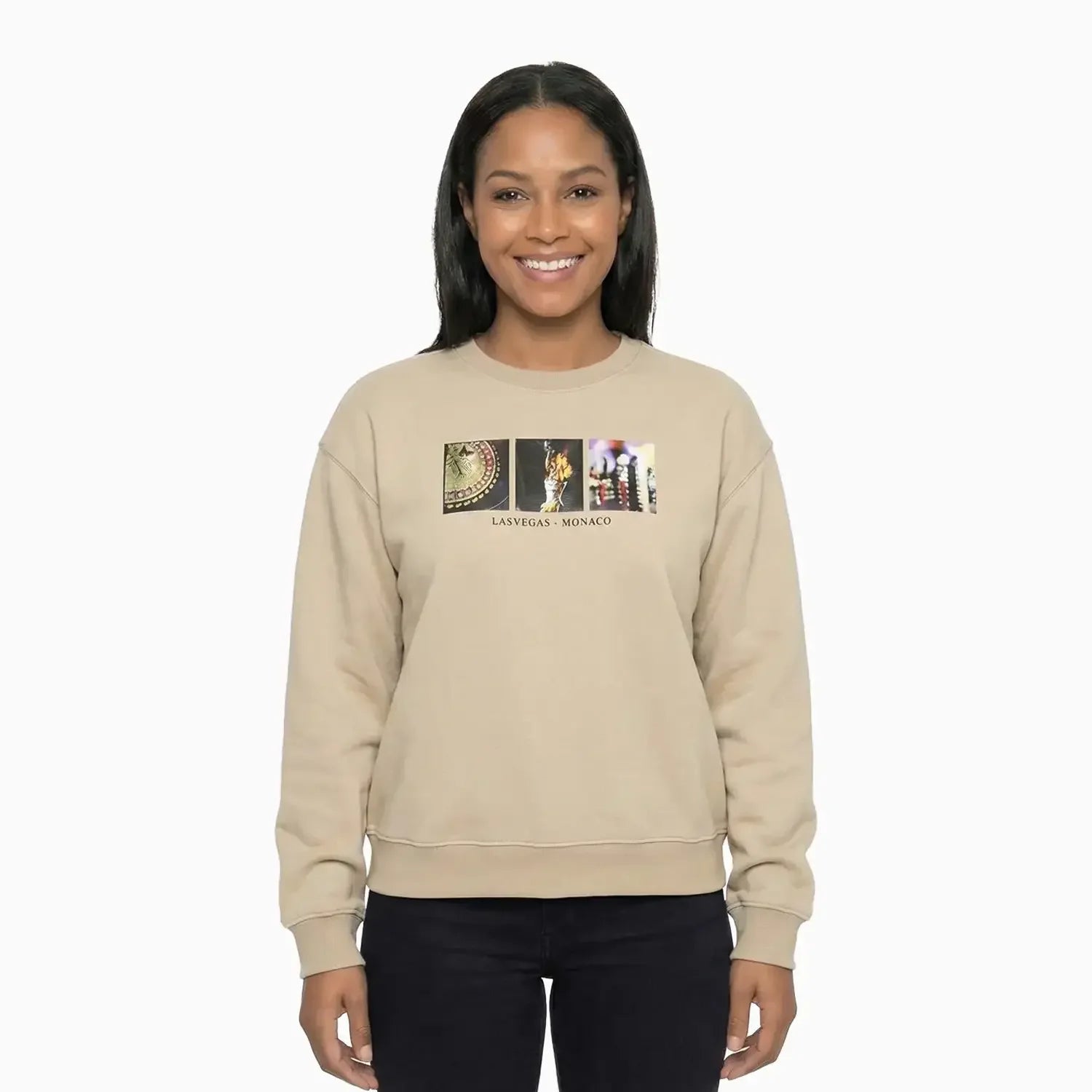Elevate your style with our Women's Las Vegas Monaco Crew Neck Sweatshirt. Made with high-quality materials, this sweatshirt offers both comfort and durability. Perfect for cooler weather, it features a crew neck and has a stylish design with the Las Vegas Monaco logo. Stay warm while showing off your love for the city.