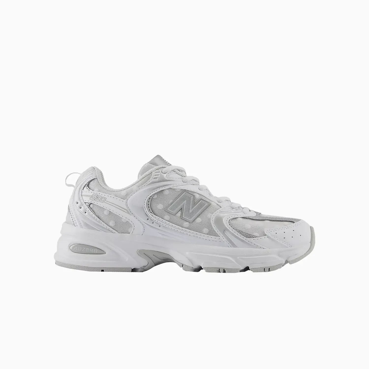 530 "White Silver Metallic Polka Dots"