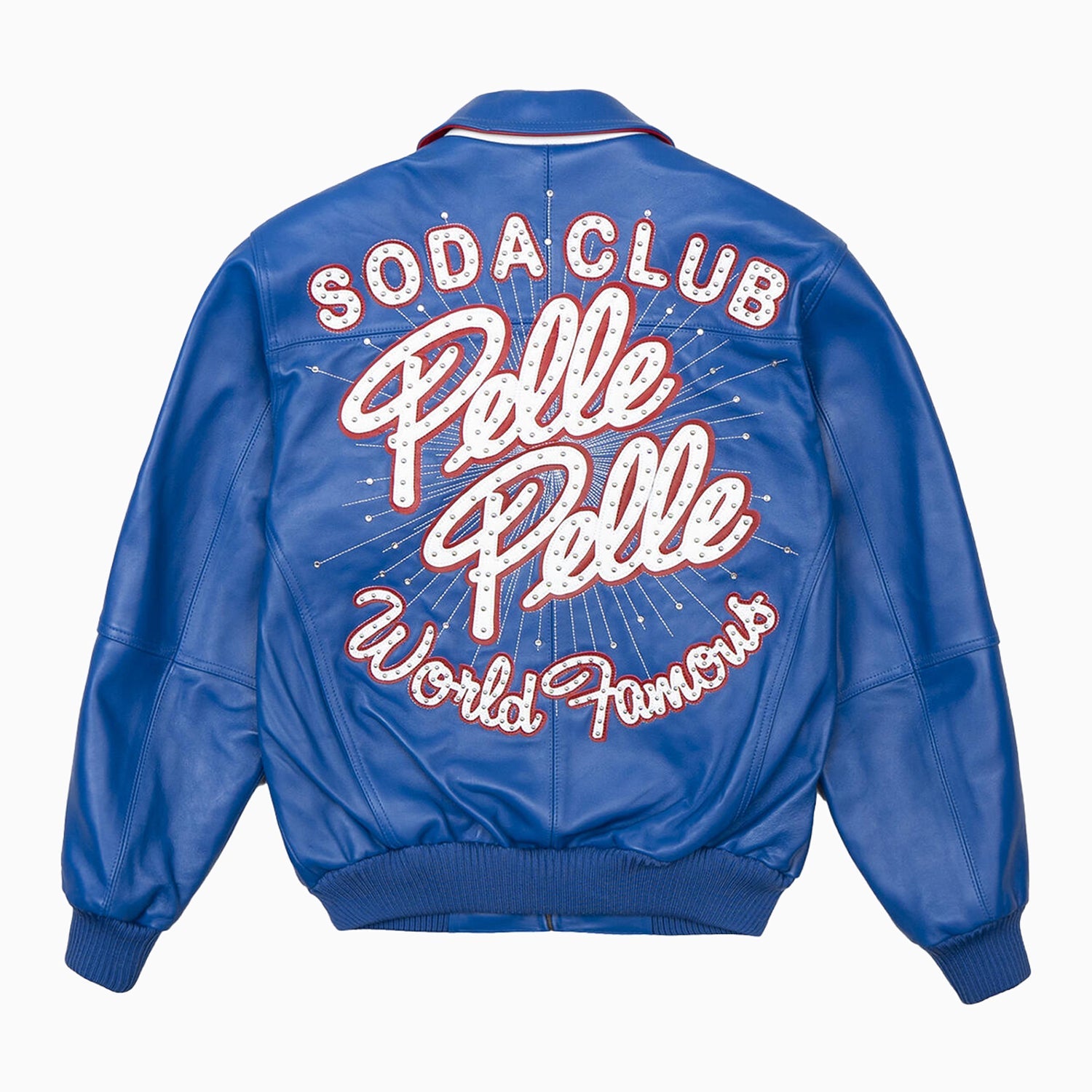This sleek leather jacket from Pelle Pelle is the perfect way to bring a classic style to any look. Crafted from genuine leather, this timeless piece features a Soda Club graphic on the back, and the signature Pelle Pelle logo on the front. The jacket is durable, lightweight, and warm, making it ideal for all seasons.