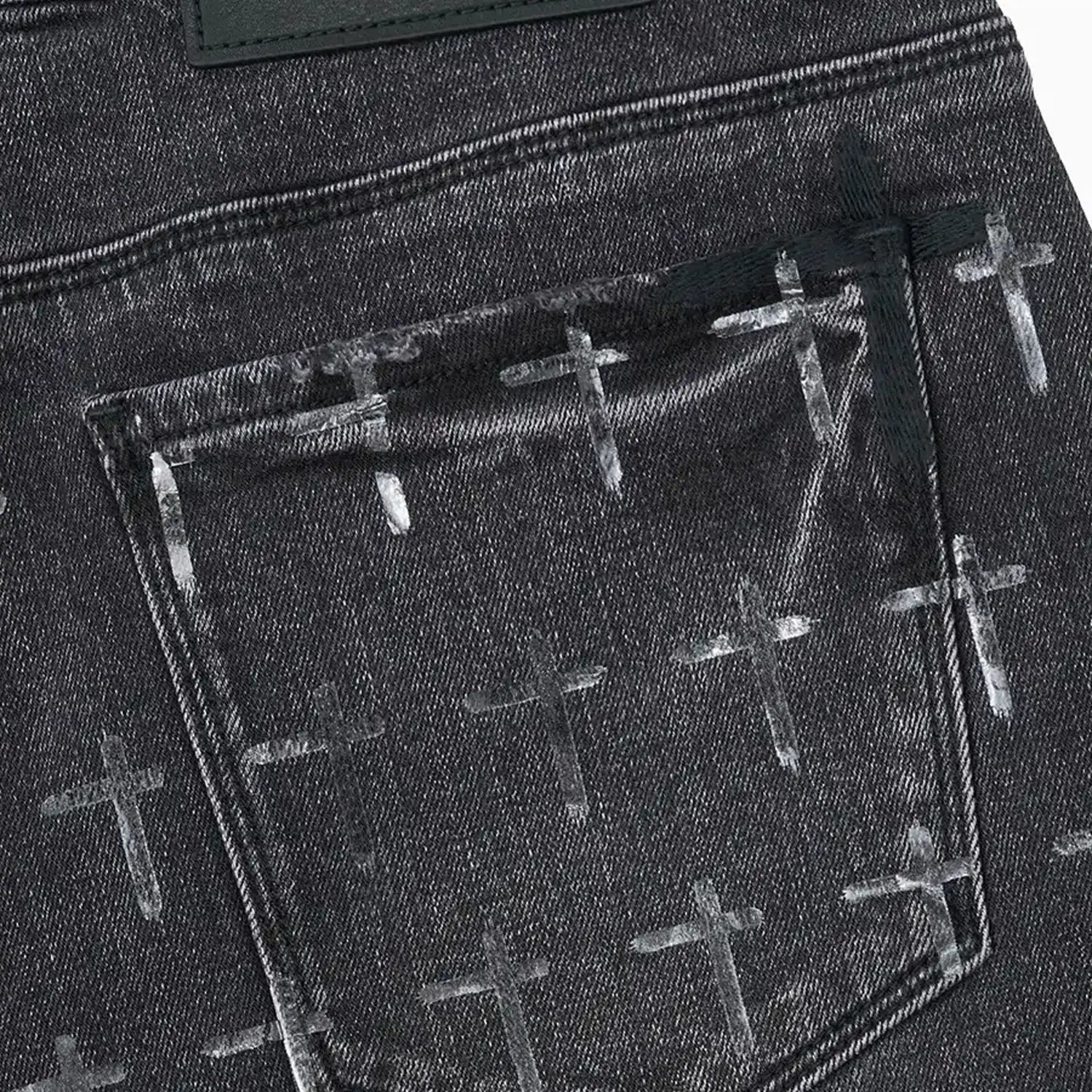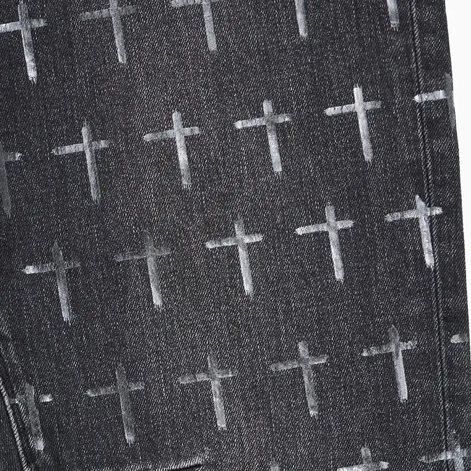 The Bryant Skinny Jean in Noir Coated Grey is made from premium denim. Designed with a skinny fit and reinforced stitching on the inner thighs, these jeans feature transparent vinyl RtA crosses throughout, the cross on the back pocket, signature leather patch at the waistband, and a reflective coated finish.