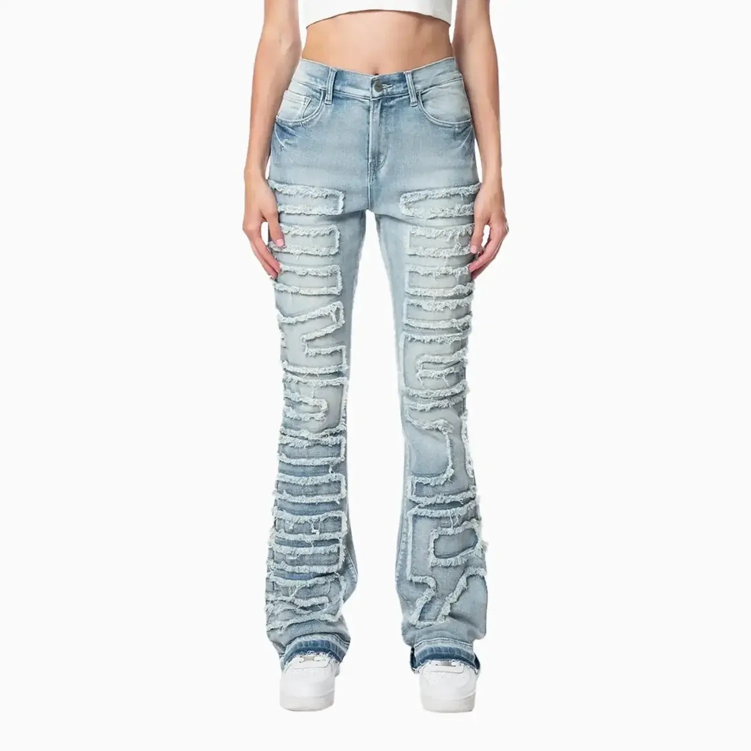 Women's High Rise Stacked Applique Jeans Pant