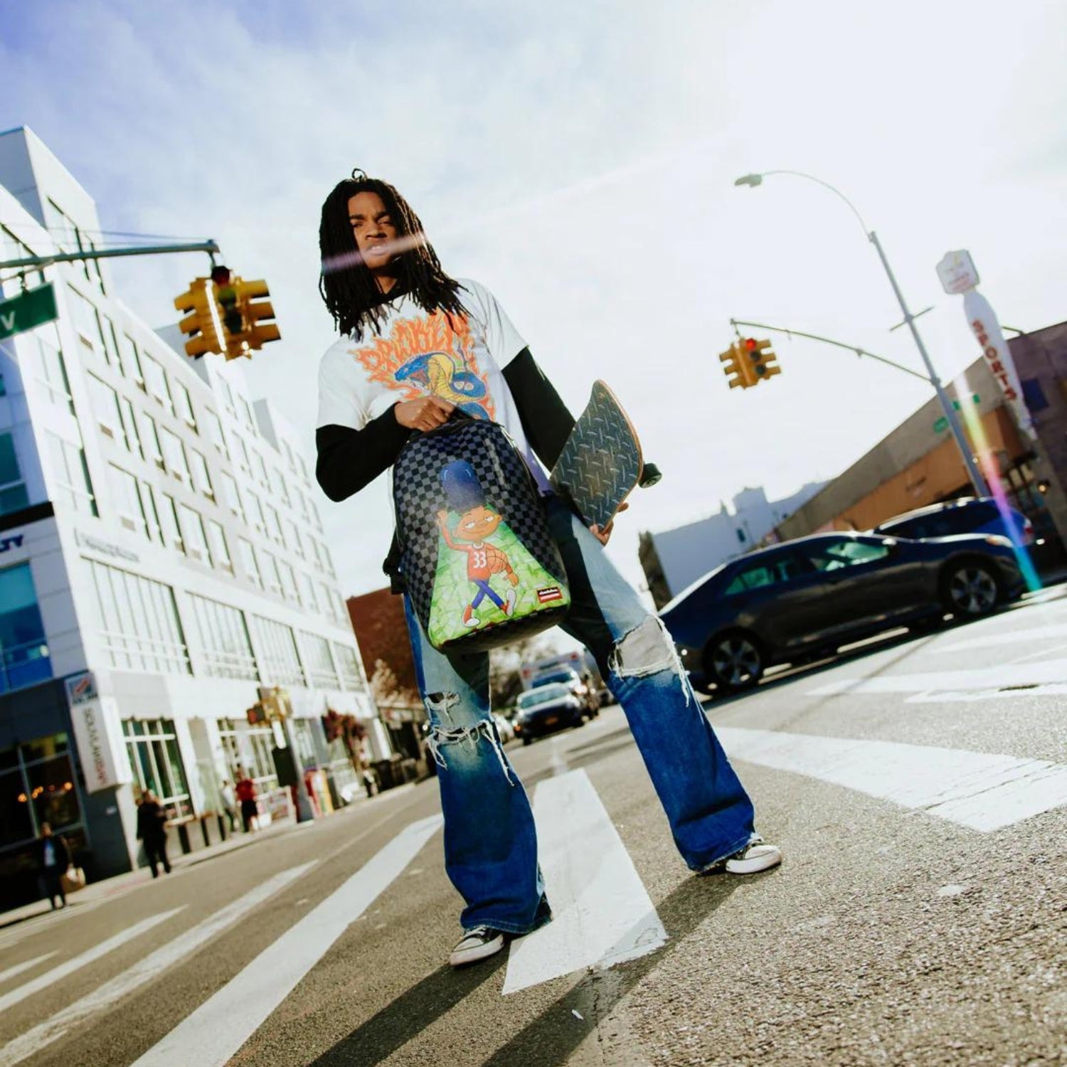 Carry your belongings in style with the Sprayground Gerald Step Into Success Dlxsv Backpack. Featuring the iconic Gerald character, this backpack is made to help you achieve your goals and conquer your day. The durable design and spacious compartments make it the perfect choice for both work and leisure.