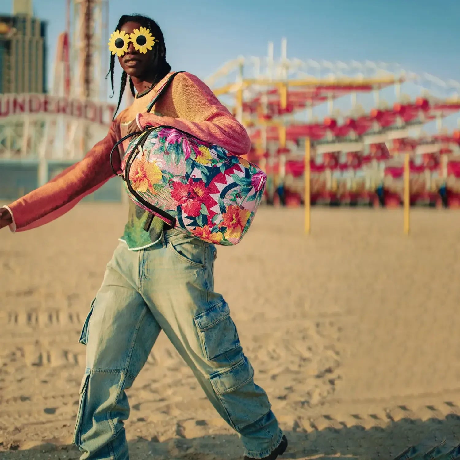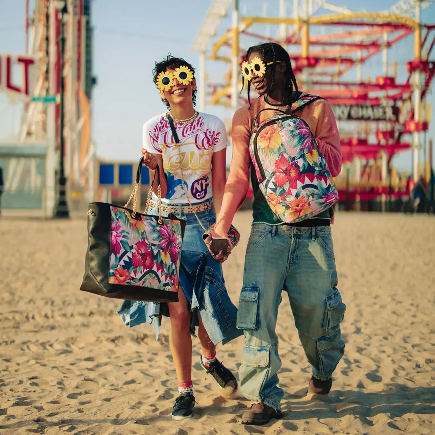 - Gold zippers with metal hardware
