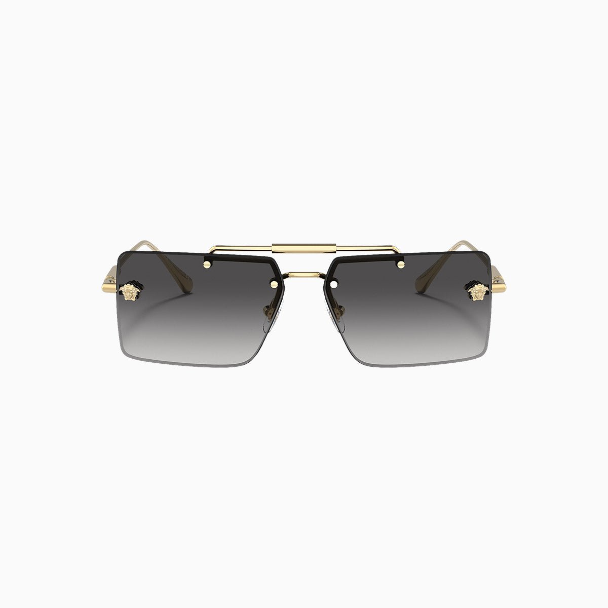 These rectangular Medusa Glam sunglasses have thin metal frames, detailed with a double nose bridge and Medusa hardware on gradient lenses.